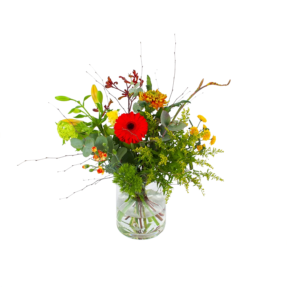 Met Boeket Speciale verrassing breng je een boeket in huis met heerlijke warme tinten voor een gezellig en warm gevoel! Geniet van dit heerlijke warme veldboeket. Altijd vers van de kweker! Verwen jezelf of verras iemand anders met een prachtig boeket. *Exclusief accessoires en vaas.