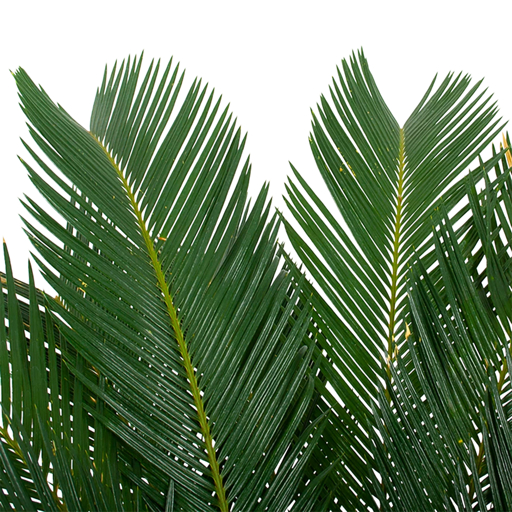 Creëer een botanische sfeer in huis met deze tropische plant voor binnen. De Cycas Revoluta is tegelijkertijd stoer en lief door zijn robuuste stam en sierlijke bladeren. Plaats de plant, die ook bekend staat als Vredespalm, op een lichte plek met indirect zonlicht zo’n 2 meter van het raam. De Cycas Revoluta is een makkelijke kamerplant: geef hem af en toe wat water en laat de grond tussen de waterbeurten door kort opdrogen.