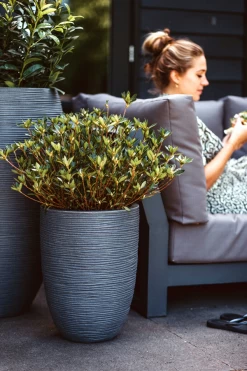Capi Bloempot Nature Elegant Rib NL – D34 X H46cm – Donkergrijs