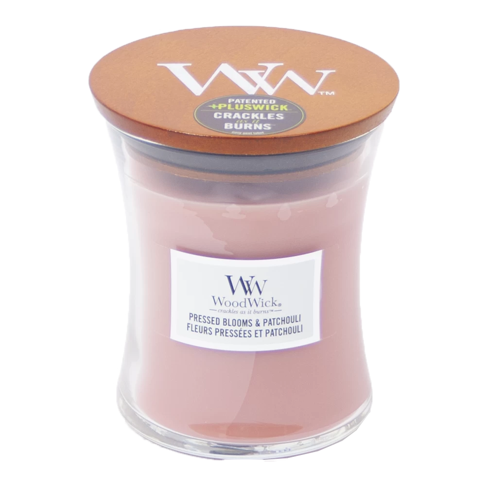 Woodwick Pressed Blooms & Patchouli Medium Candle – Geurkaars